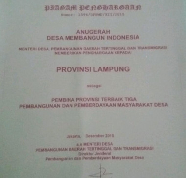 Piagam penghargaan yang dipero ..