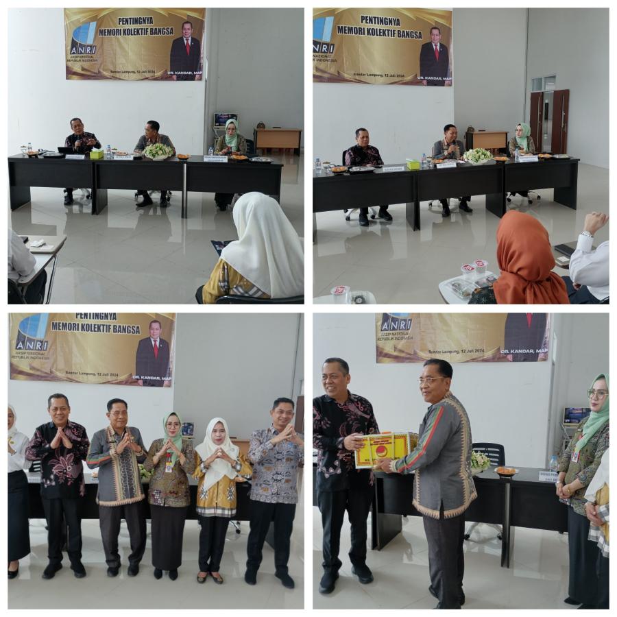Jum'at, 12 Juli 2024 bertempat di Ruang Rapat Aula lantai 2 Gedung Dinas Perpustakaan dan Kearsipan Provinsi Lampung diadakan acara Pengarahan tentang "Pentingnya Memori Kolektif Bangsa(MKB) oleh Dr.Kandar, MAP Deputi Bidang Penyelamatan, Pelestarian dan Perlindungan Arsip dari Arsip Nasional Republik Indonesia(ANRI).