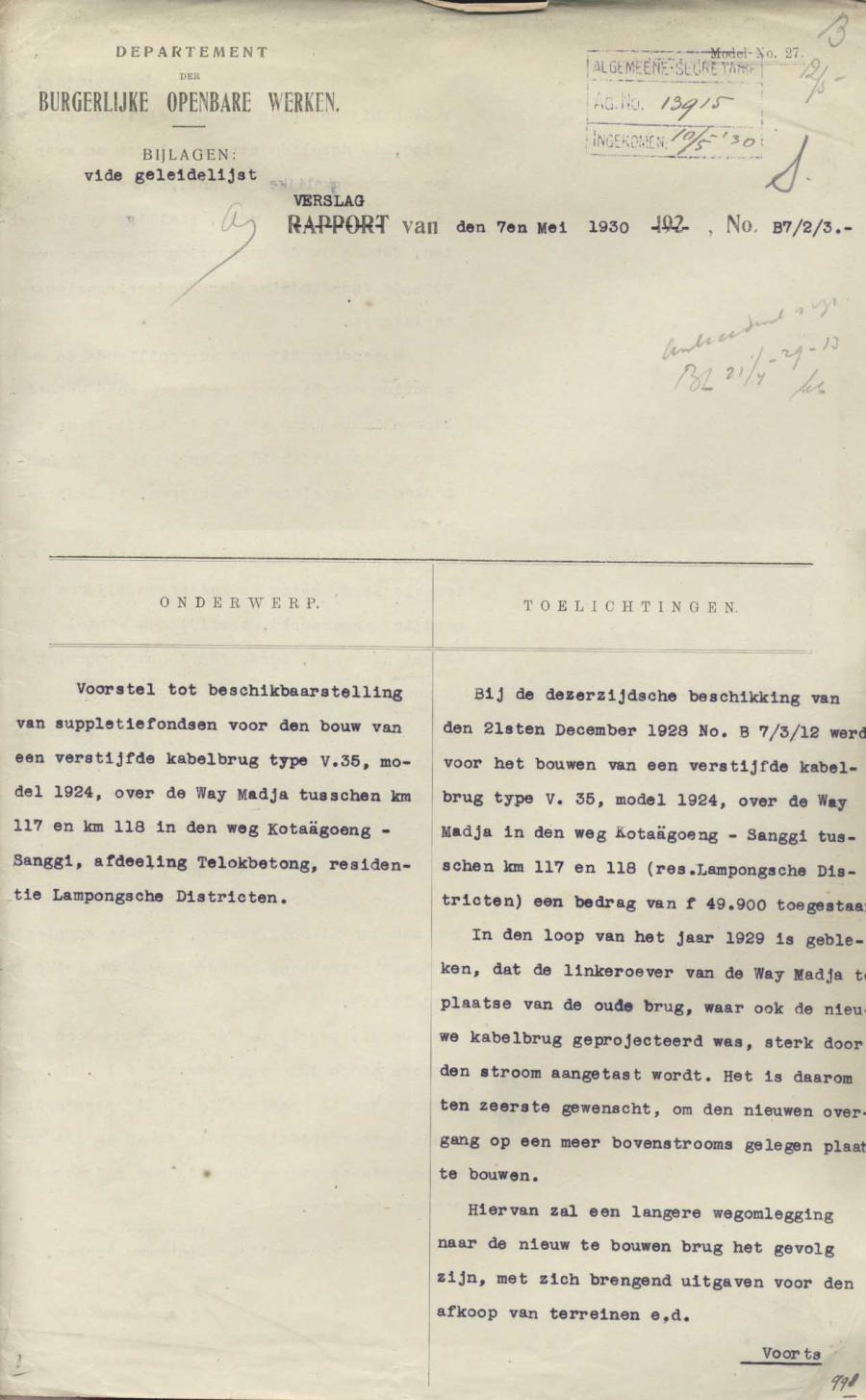 Besluit No 1 tentang Kabelbrug yang kaku tipe U 35 model 1924 melintasi Way Madja diantara KM 117dan 118 jalan Kota Agung-Sanggi Teluk Betung 8 April 1931 7