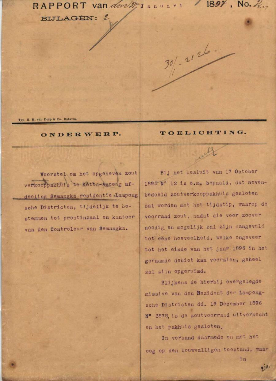 Besluit No 21 Tentang Pembangunan Yang Dulu Pernah Dipergunakan Sebagai Gudang Penjualan Garam Di Kota Agung 3 Februari 1897 4