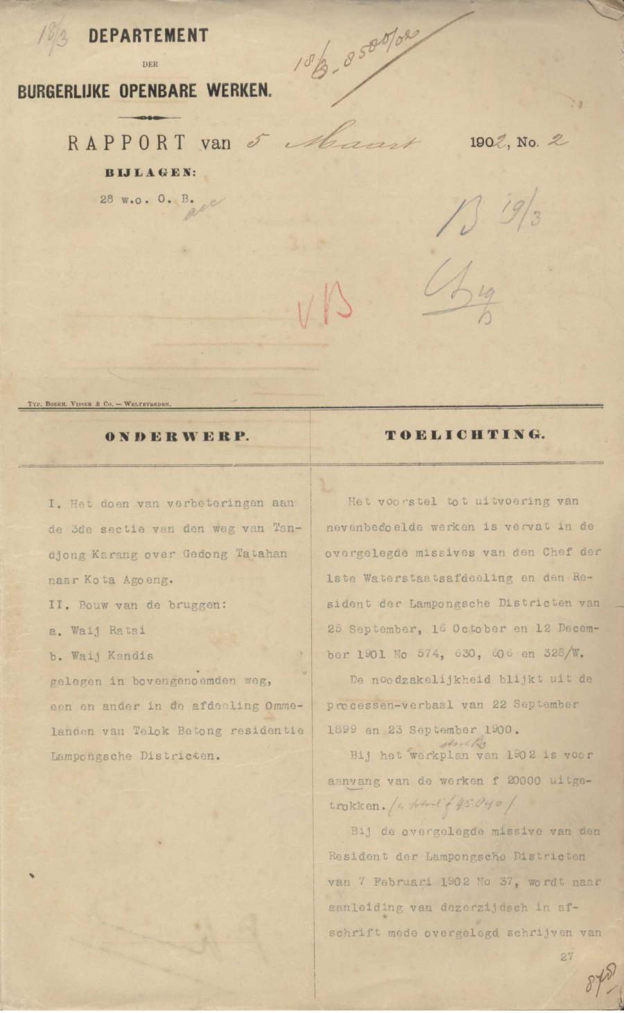 Besluit No 8 tentang perbaikan untuk sectie III jalan dari Tandjung Karang melintasi Gedong Tataan ke Kota Agoeng afdeling Ommelanden Telok Betong Keresidenan Distrik Lampongsch 25 April 1902 2