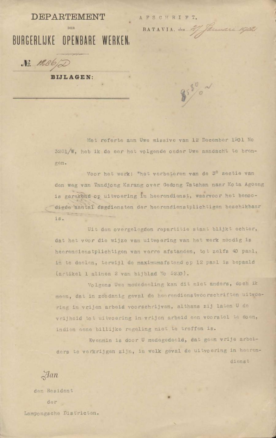 Besluit No 8 tentang perbaikan untuk sectie III jalan dari Tandjung Karang melintasi Gedong Tataan ke Kota Agoeng afdeling Ommelanden Telok Betong Keresidenan Distrik Lampongsch 25 April 1902 5