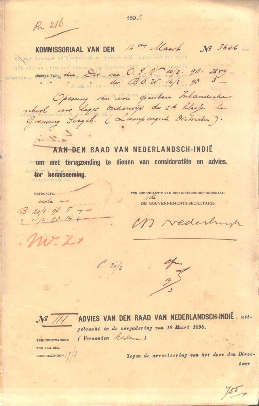 Besluit No28 Tentang Sekolah Umum Pribumi Untuk Kelas 2 Di Goenoeng Soegih 30 Maret 1898 2