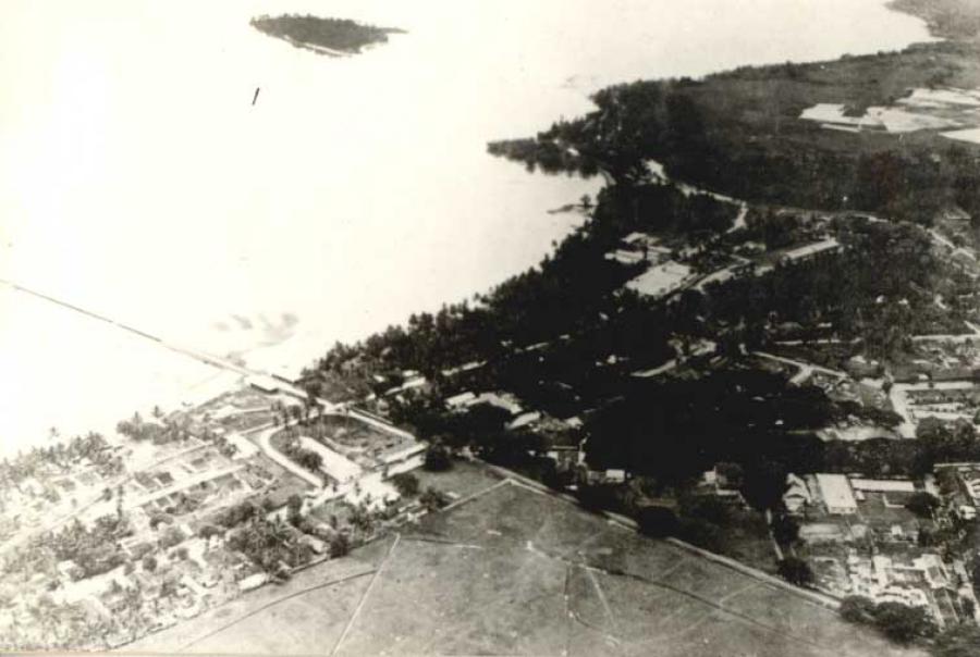Foto udara Pantai Teluk Betung dengan bangunan-bangunannya, Lampung