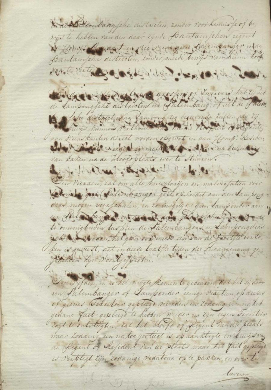 Kontrak antara Kerajaan Banten dengan Kerajaan Palembang tentang ketentuan pembagian daerah Lampung dan Palembang. Bahasa Belanda dan Arab Melayu. 18 Desember 1793-10