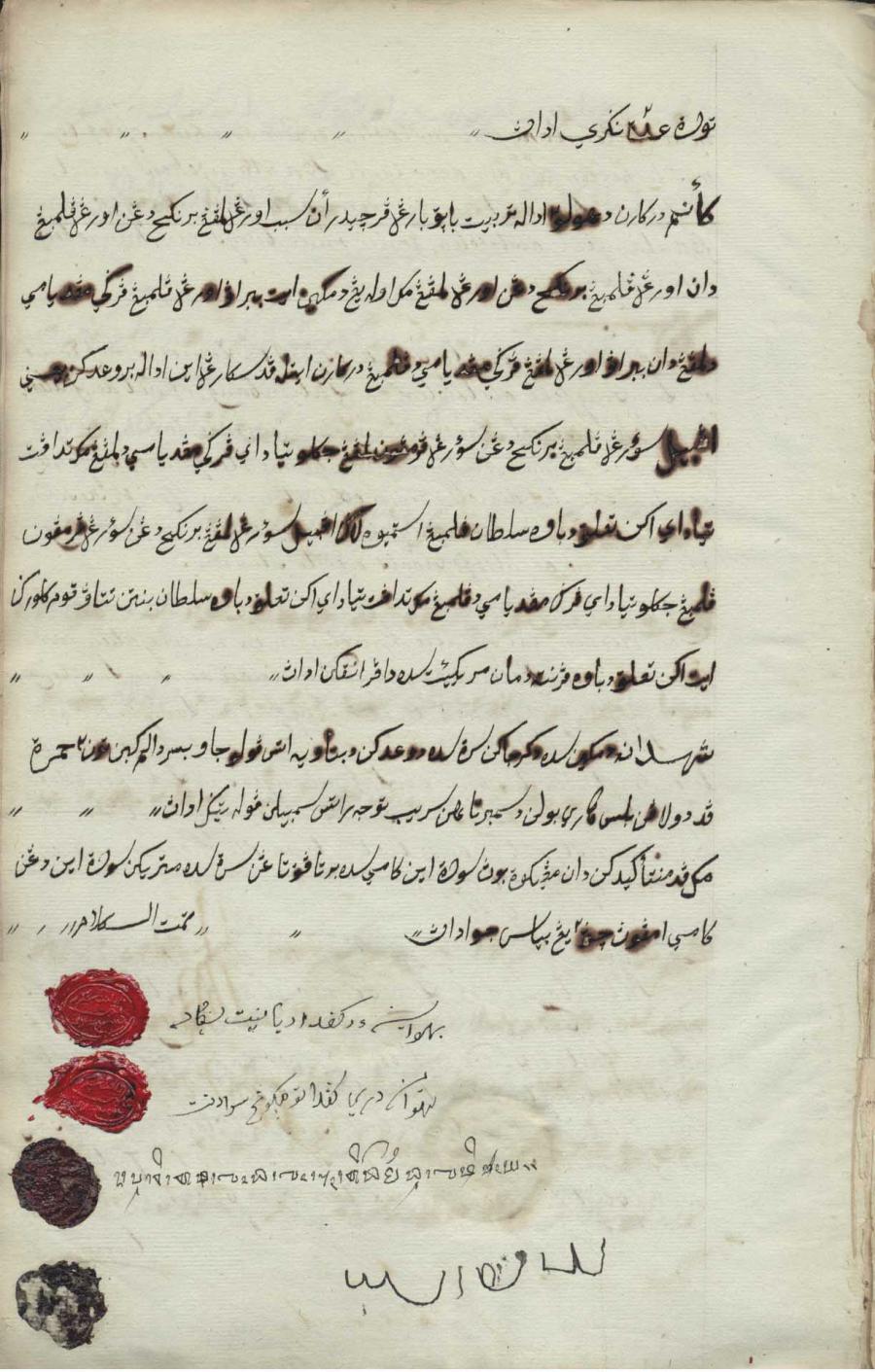 Kontrak antara Kerajaan Banten dengan Kerajaan Palembang tentang ketentuan pembagian daerah Lampung dan Palembang. Bahasa Belanda dan Arab Melayu. 18 Desember 1793-11