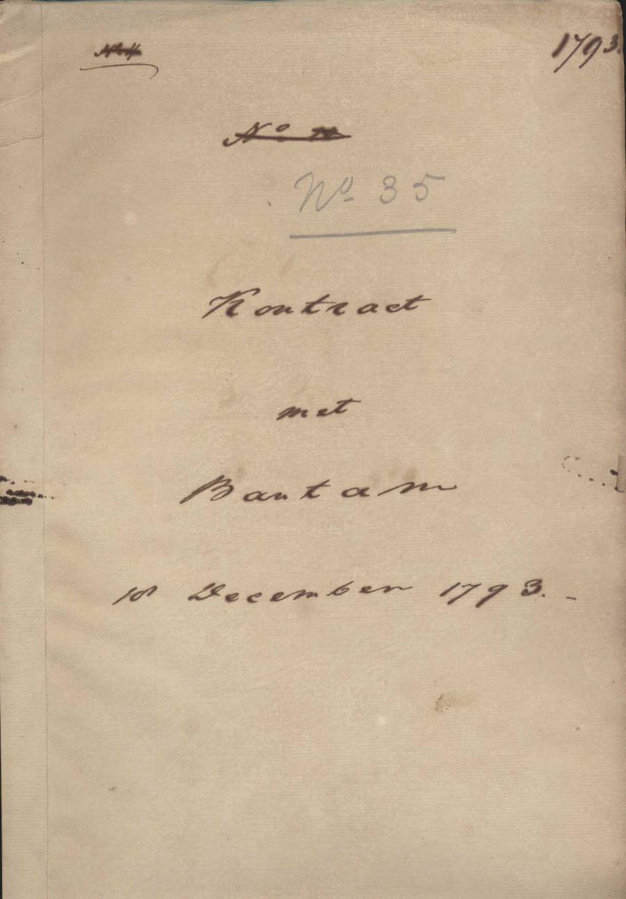 Kontrak antara Kerajaan Banten dengan Kerajaan Palembang tentang ketentuan pembagian daerah Lampung dan Palembang. Bahasa Belanda dan Arab Melayu. 18 Desember 1793-2