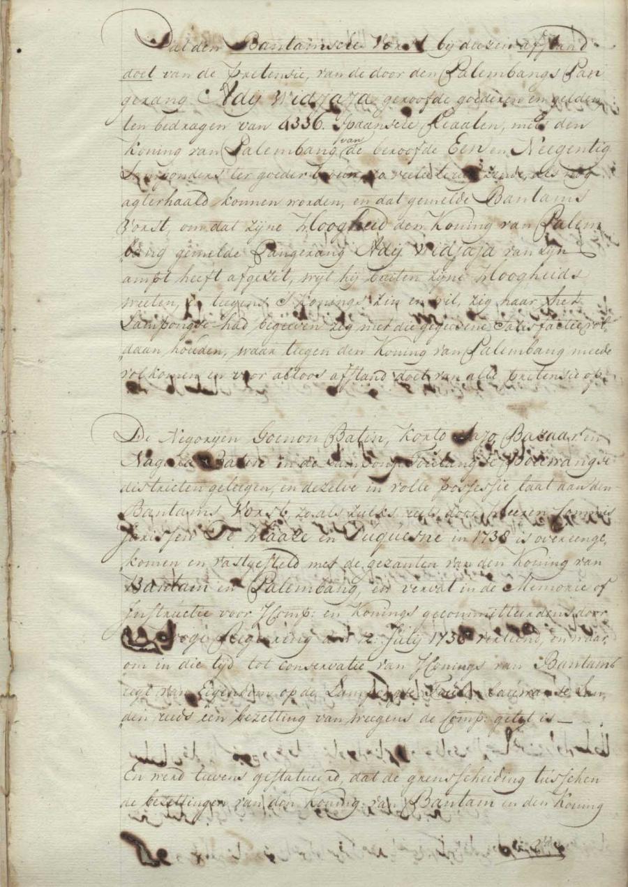 Kontrak antara Kerajaan Banten dengan Kerajaan Palembang tentang ketentuan pembagian daerah Lampung dan Palembang. Bahasa Belanda dan Arab Melayu. 18 Desember 1793-6