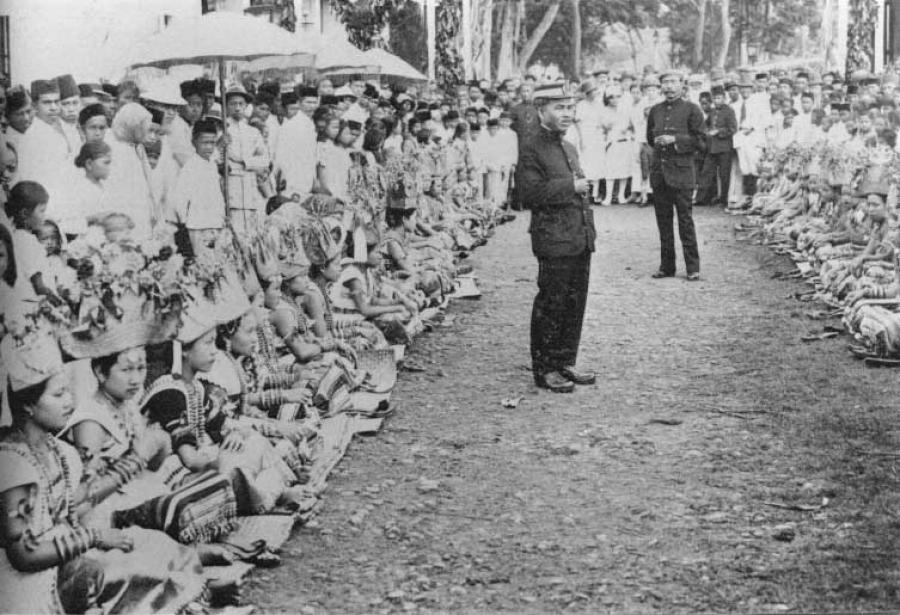 Pemudapemudi Berpakaian Daerah Dan Masyarakat Ketika Menyambut Kedatangan Gubernur Jenderal Mrfock Di Teluk Betung Lampung 1921
