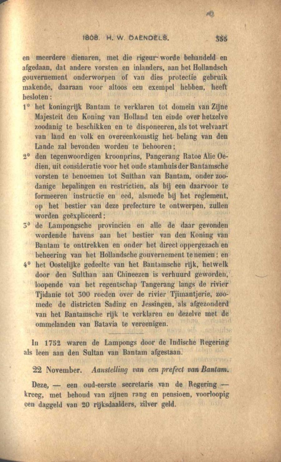 Pengumuman tentang pengembalian daerah Lampung menjadi provinsi tersendiri setelah tahun 1752 dipinjamkan kepada Sultan Banten. November 1808