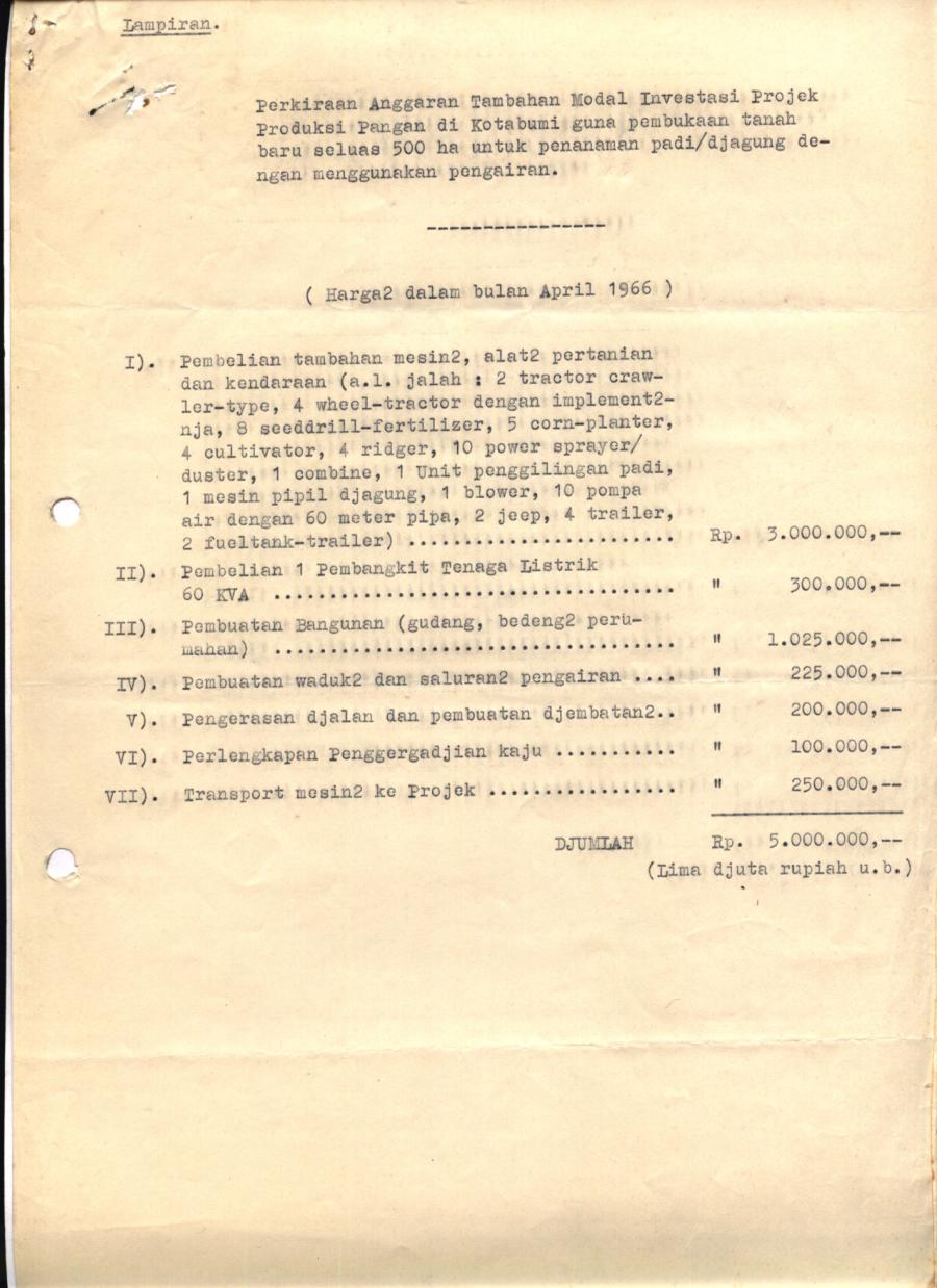 Surat Tentang Penambahan Modal Investasi Proyek Produksi Pangan Di Kota Bumi Lampung Utara 26 April 1966 5